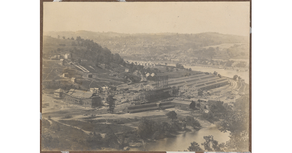 • [View of construction by river]