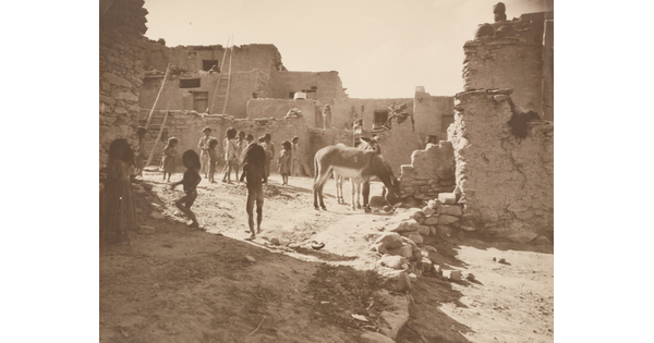 • [Children at Indian pueblo with donkey]