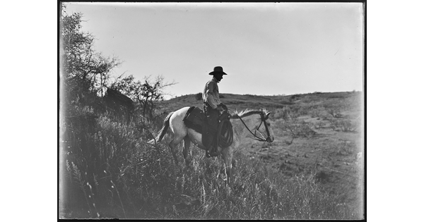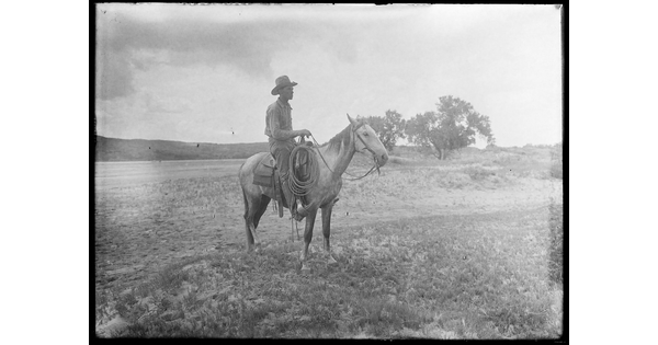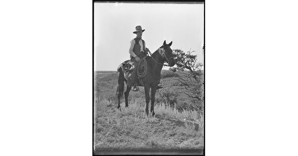 • [Mounted cowboy with packhorse]