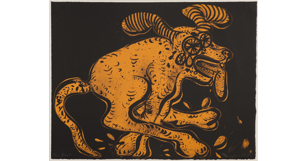 Ink, crayon, and opaque watercolor on paper