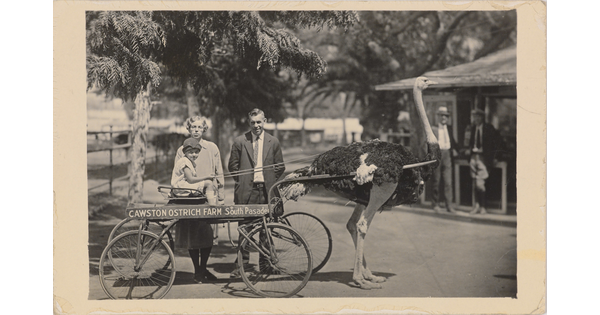 • [Child riding in an ostrich-drawn cart]