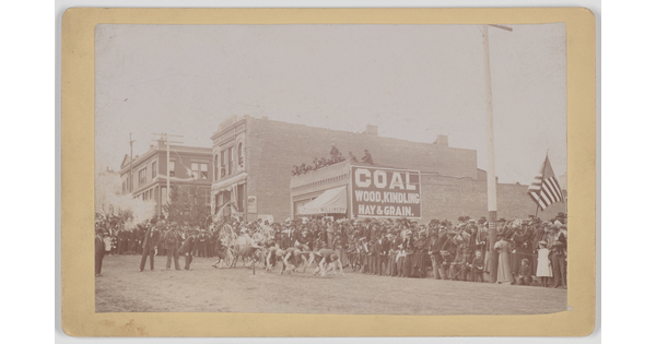 • [Group portrait in front of storefront, Fairplay, Colorado]