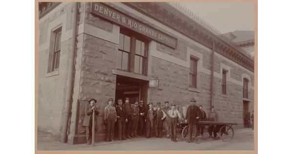 • [Group portrait outside Denver & Rio Grande Express Station]