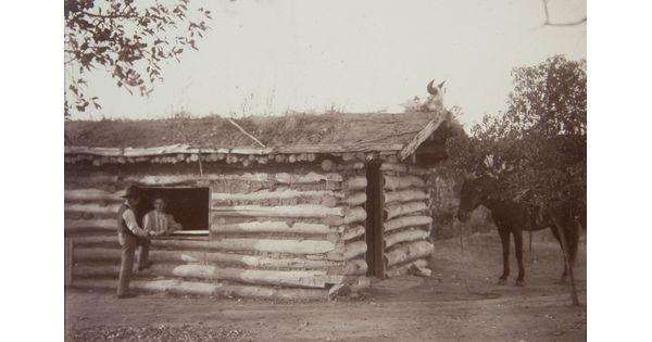 www.cartermuseum.org/.../man-and-woman-talking-window-log-cabin-sod-roof-p19863680