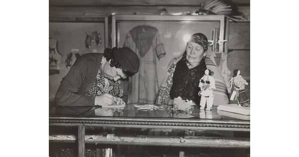 • [Navajo women using grindstones]