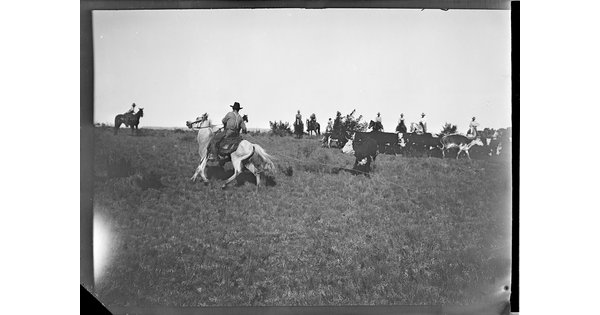 • [Cowboys roping a cow for branding or doctoring]
