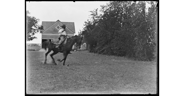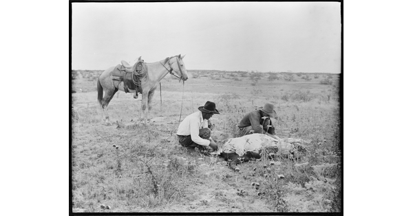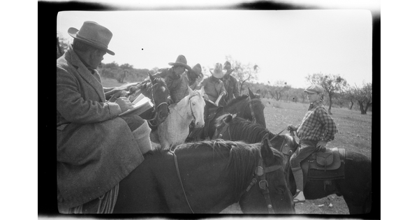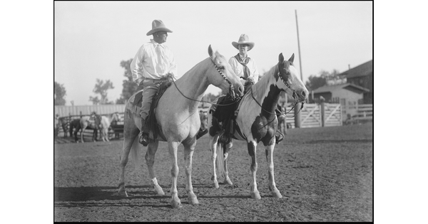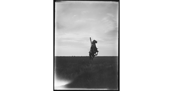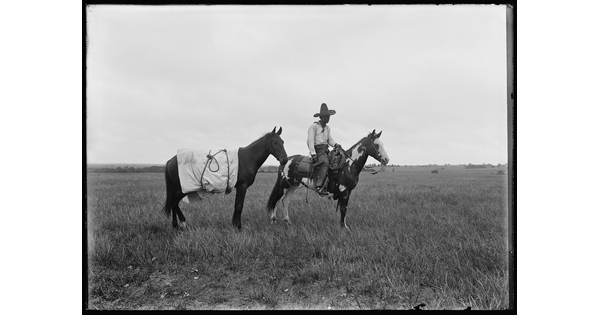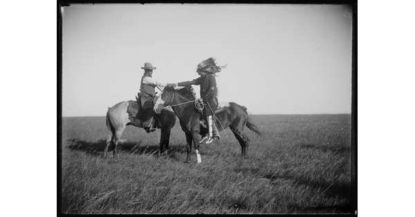 [Cowboy and Indian (Erwin E. Smith) on horseback, greeting each other]