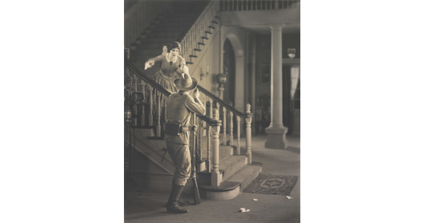 [Florence Vidor running down stairs to Charles Delaney, "Barbara Frietchie"]