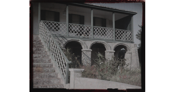 • [Bermuda - raised house with arches and lattice work porch railings]