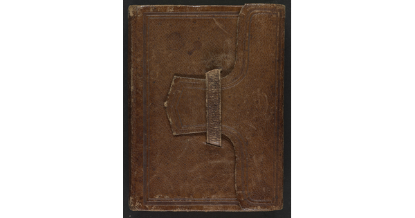 Leather two-fold case containing 23 tintypes