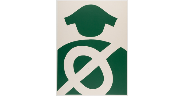 • A black-and-white print of an abstracted man with Asian features, a bright white face, and wearing a delicate patterned necklace all on a black background.