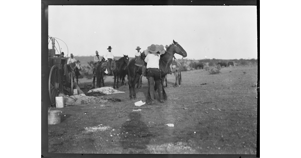 [Cowboy and Indian (Erwin E. Smith) on horseback, greeting each other]
