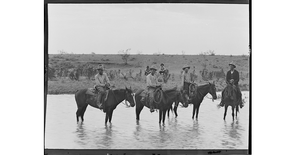 • Cowboys at the water hole. Spur Ranch, Texas.