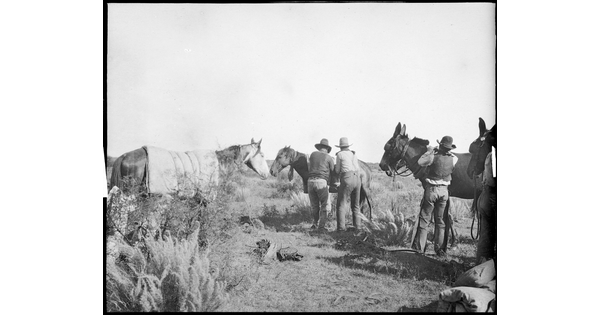 www.cartermuseum.org/.../harnessing-mules-and-tying-packs-spur-ranch-texas-lcs59347