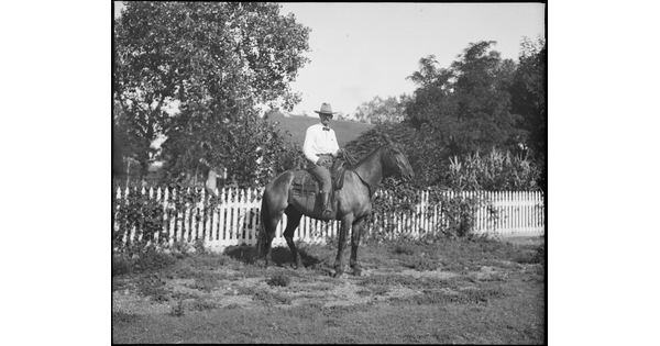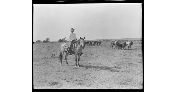 • Alex G. Ligertwood mounted at the JA Ranch headquarters. JA Ranch, Texas.