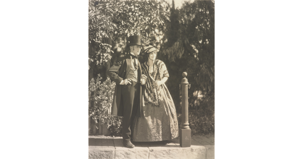 • [Florence Vidor standing outdoors with Edmund Lowe in formal attire, "Barbara Frietchie"]