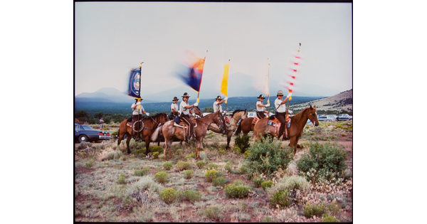• Navajo Tribal Police Presenting Colors at Celebration of Lease-Purchase of Sacred Mountain Land, San Francisco Peak, Arizona, 1986