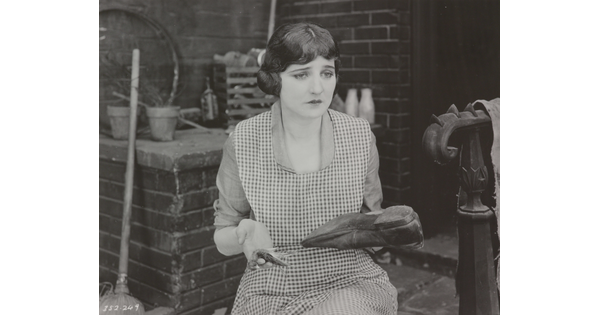 • [Agnes Ayres in apron, holding shoe and dead bird, "Forbidden Fruit"]