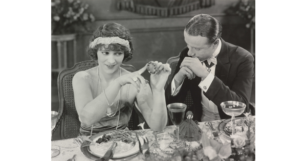 [Dorothy Dalton holding fan and Theodore Kosloff holding knife, "Fool's Paradise"]