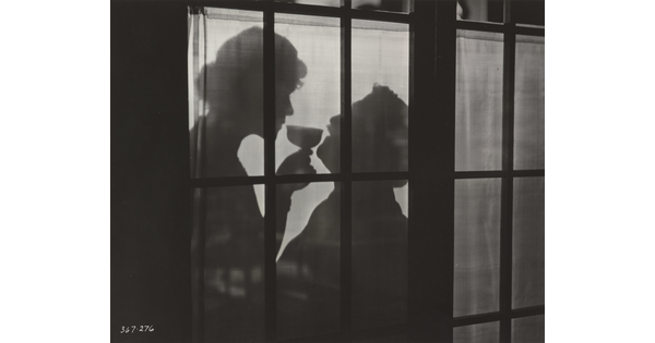 [Silhouette of Wanda Hawley and Theodore Roberts drinking in window, "Affairs of Anatol"]