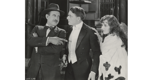 [Forrest Stanley with pistol, with Clarence Burton and Agnes Ayres, "Forbidden Fruit"]