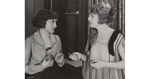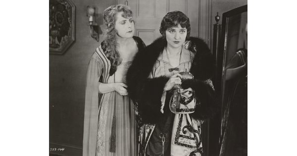 [Agnes Ayres modeling dequined coat, with Kathlyn Williams, "Forbidden Fruit"]