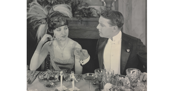 [Forrest Stanley and Agnes Ayres in formal dinner scene, "Forbidden Fruit"]