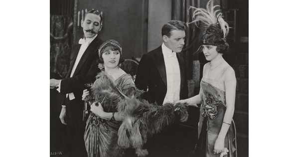 [Forrest Stanley and Agnes Ayres with couple in formal attire, "Forbidden Fruit"]