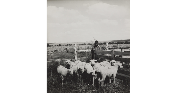 • [Navajo boy with corralled sheep]