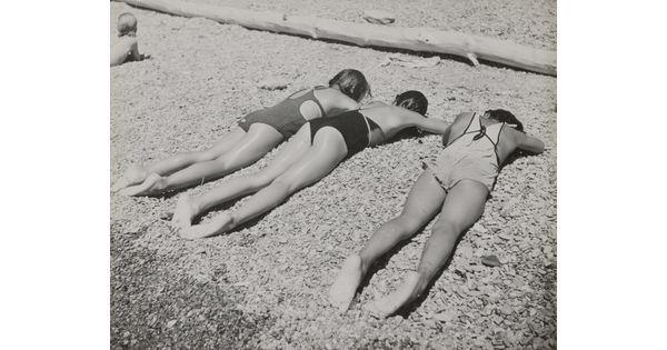 • [Three sunbathers at Flathead Lake]