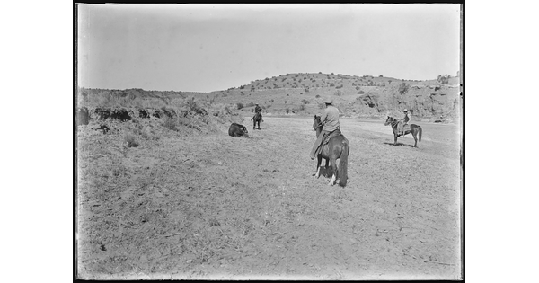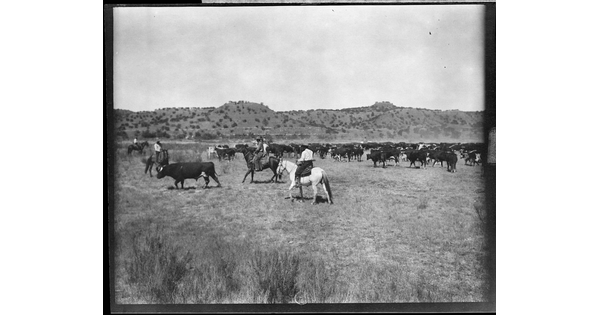 www.cartermuseum.org/.../three-cowpunchers-approaching-outlaw-steer-croton-breaks-matador-ranch-texas-lcs6088