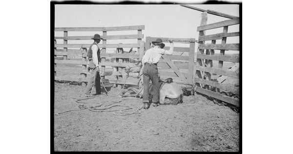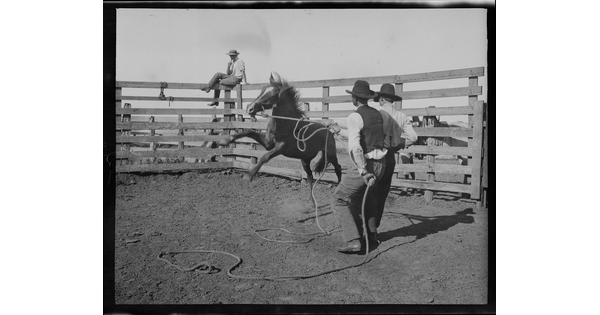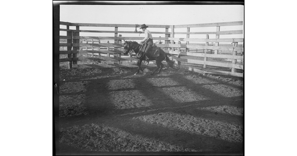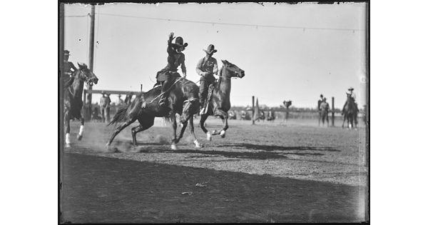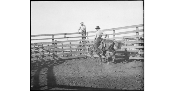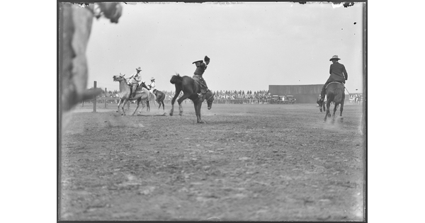 www.cartermuseum.org/.../rodeo-performer-riding-pitching-horse-rodeo-grounds-somewhere-southwest-lcs6963